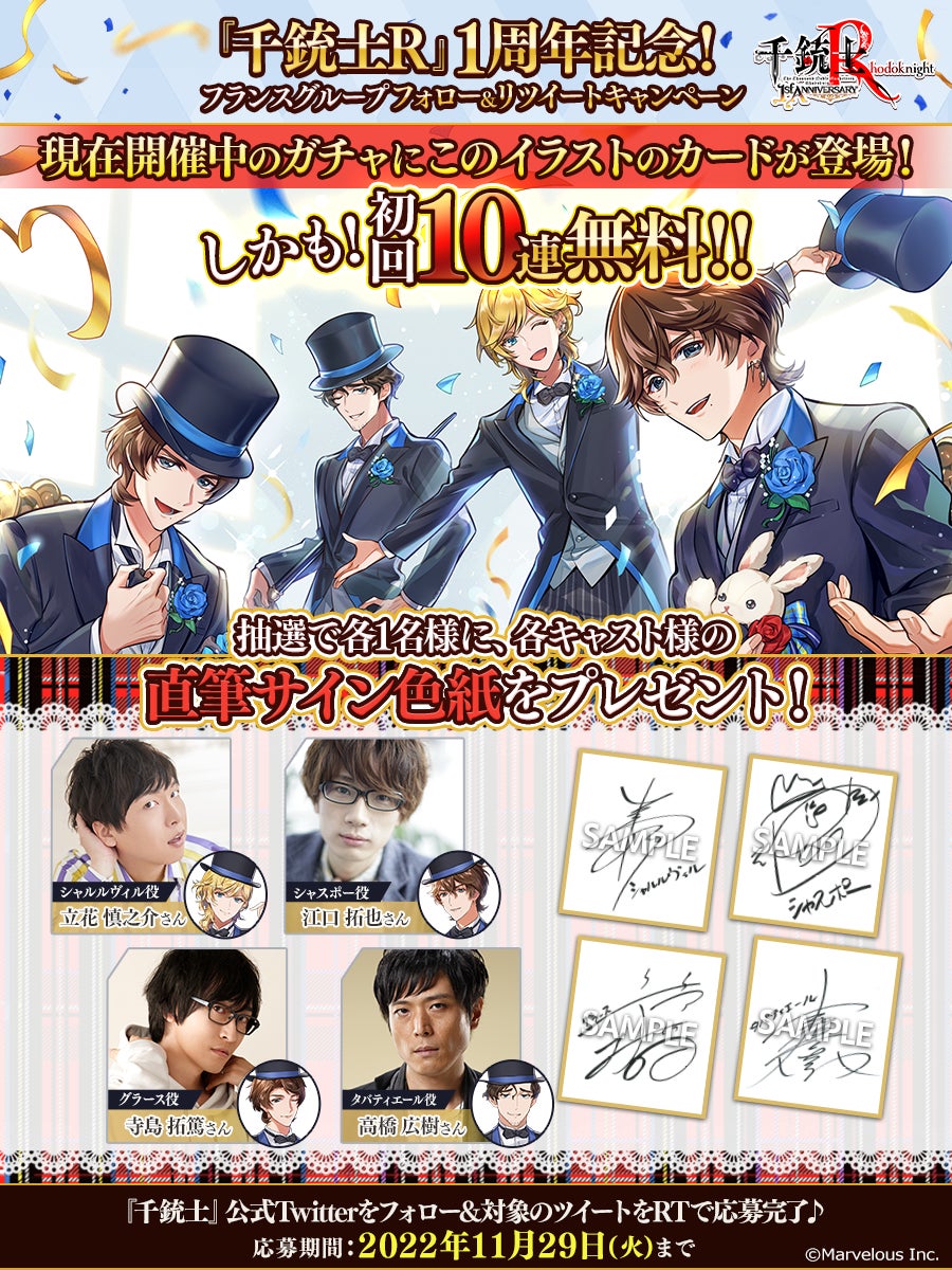 『千銃士R』1周年記念!フランスグループフォロー&リツイートキャンペーン