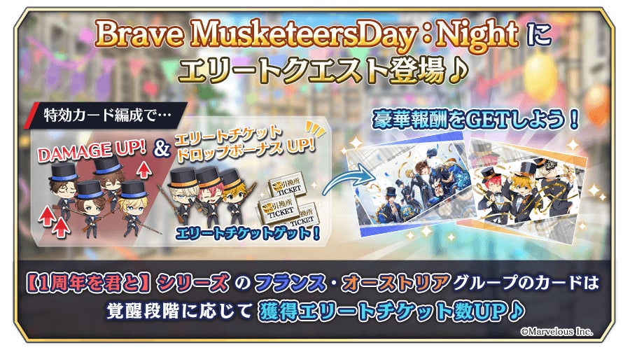 - ◆好評開催中!イベント「Brave Musketeers Day:Night」にエリートクエスト追加!