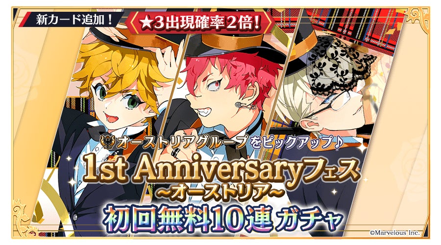 ※「1st Anniversaryフェス~オーストリア~」と「★3確定有償限定1st Anniversaryフェス~オーストリア~」のガチャでピックアップ対象となります。