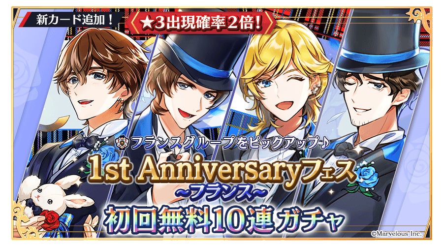※「1st Anniversaryフェス~フランス~」と「★3確定有償限定1st Anniversaryフェス~フランス~」のガチャでピックアップ対象となります。