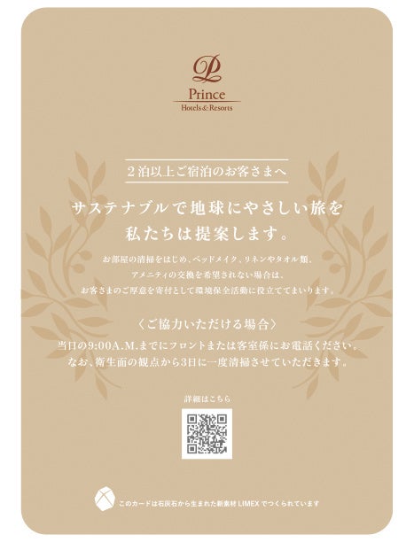 株式会社プリンスホテル(本社:東京都豊島区南池袋1-16-15 代表取締役社長:小山 正彦)は、サステナブルなホテルチェーンを目指し、プラスチックごみ削減をはじめとする環境に配慮した活動を進めてまいります。