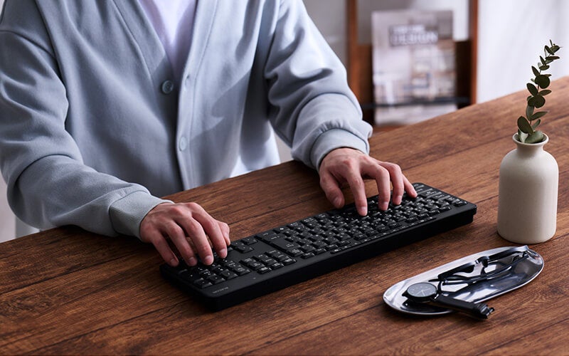 キーの軸、内部空間、ラバーなどキーボードのあらゆる要素の設計を見直し、優れた静音性としっかりとした打鍵感を両立したキーボードです。静かなオフィスはもちろん、音が気になりやすい公共施設やカフェなどでも使用できます。