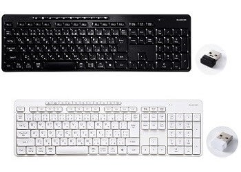 内容物:キーボード本体×1、レシーバー×1、動作確認用単4形アルカリ乾電池×2