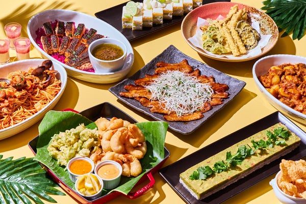 日本料理・西洋料理・中国料理・スイーツの各専門シェフが腕を振るうお料理の数々をお届けします。たんぱく質が豊富で良質な脂質がとれるメカジキを焼いてフレークにしたものと、滑らかでクリーミーなアボカドを合わせた“メカジキフュメとワカモレ”。夏にふさわしく彩り鮮やかな見た目が食欲をそそります。“サーモンのケイジャンスパイスロースト ケッパーオリーブソース”は、スパイシーな味わいがクセになるケイジャンスパイスとサーモンを一緒にローストすることで適度な辛みが生まれ、食欲をかき立てる一品です。プリッとした食感を楽しめる”海老のフリット“や、衣はサクッと、中はとろりとした食感がたまらない”アボカドのフリット“、魚介類をにんにく、オイル、トマトソースで仕上げた”スパゲティーニ ペスカトーレ“など、思わずお酒が進むメニューも。冷えたビールや特製カクテルなどと合わせてお楽しみください。疲労回復効果が高い豚肉を使った“豚トロのにんにく香味焼き”や、ヘルシーながら栄養価が高い仔羊のお肉を使った“仔羊のチリンドロン”もおすすめです。スタミナ食材と言われるにらを使った”焼きにら饅頭“は、労回復に最適です。ディナータイム限定では、初夏から夏に旬を迎える、栄養価が高く滋養強壮に効果がある脂がのった旬の“穴子”を揚げたての天麩羅でご用意いたします。その時々におすすめの夏野菜の天麩羅も合わせてご賞味ください。夏が旬のメロンや桃、マンゴーを使った、さっぱりとしつつもフルーツの甘さをしっかり味わえるスイーツもお楽しみください。