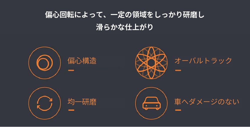 偏心回転の仕組みによって、スムーズで滑らかな仕上がりを実現します。