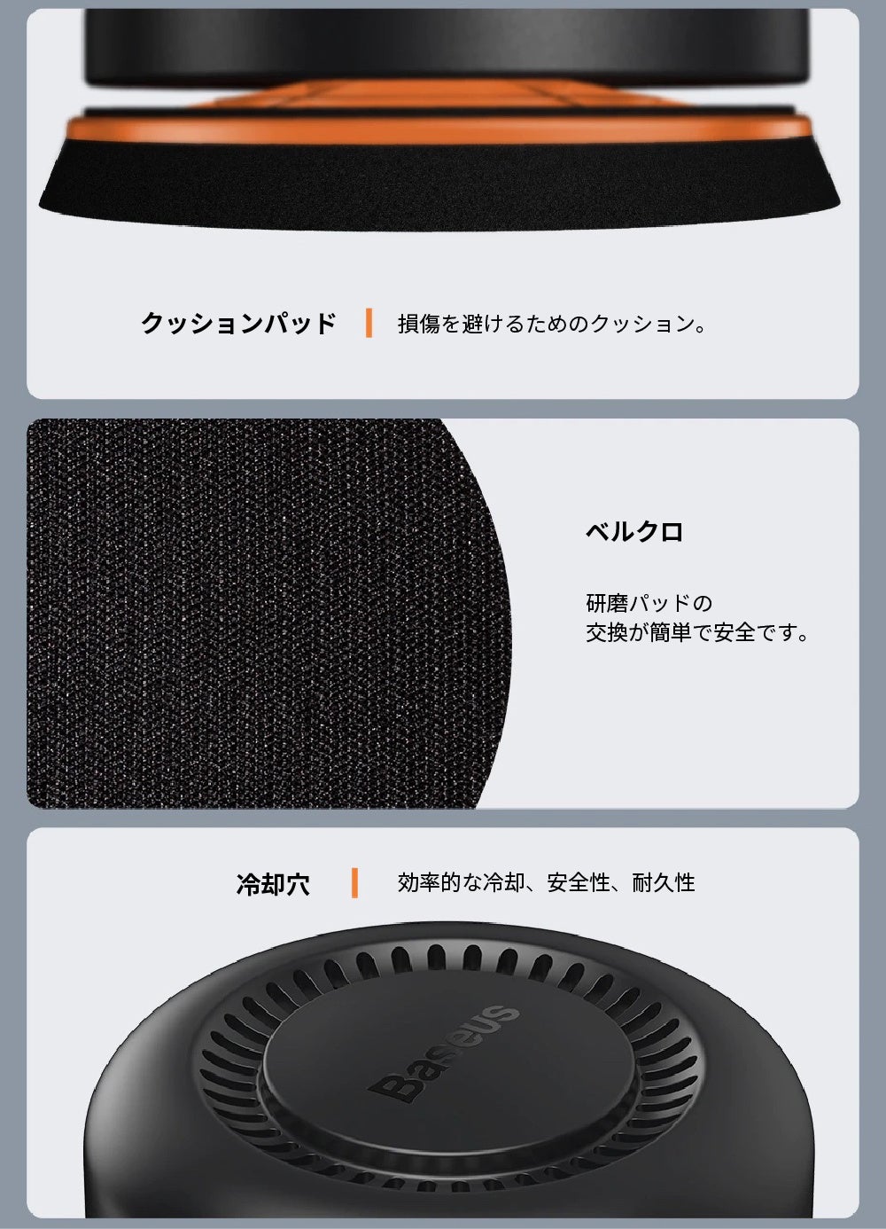 ・ワックスがけの段階に合わせた、3種の取り替えパッド付属