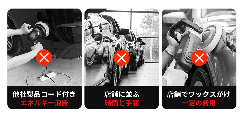 車のワックスがけを自分でスマートにできるワイヤレス電動ポリッシャーです。