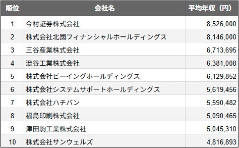 【2025年最新版】金沢市:上場企業平均年収ランキングTOP10/SalesNow DBレポート