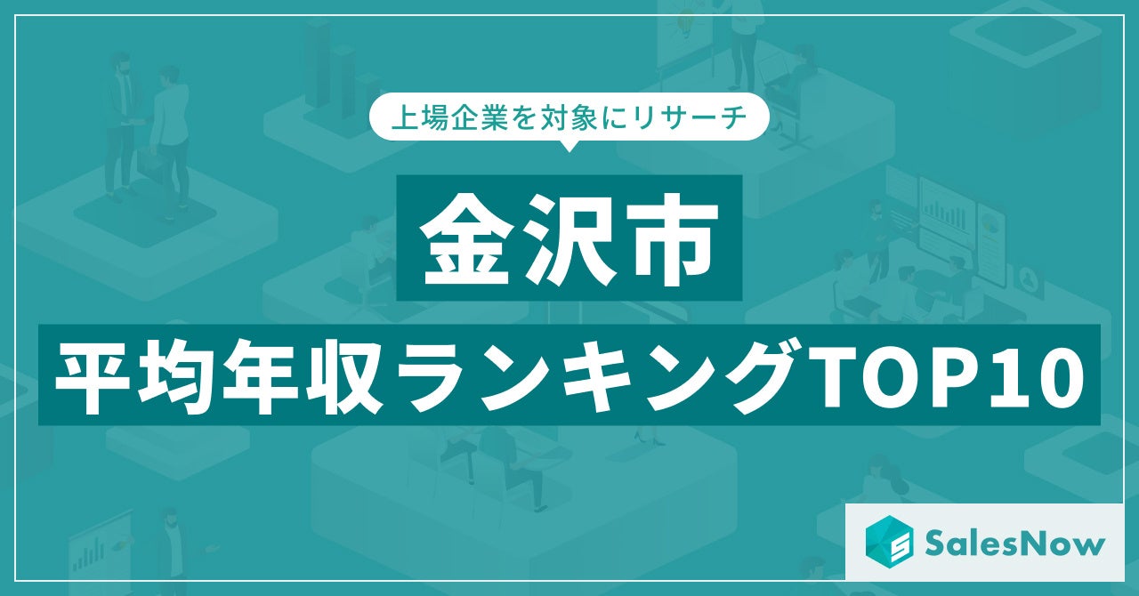 株式会社SalesNow(本社:東京都渋谷区、代表取締役:村岡功規、以下「当社」)は、国内540万社の企業情報を完全網羅した日本最大級のデータベース「SalesNow DB」より、上場企業を対象とした「市区町村別の平均年収ランキング」を発表しました。本リリースでは、各都市別のデータをもとに、今回は「金沢市に本社を置く企業」を対象に、平均年収にフォーカスしています。