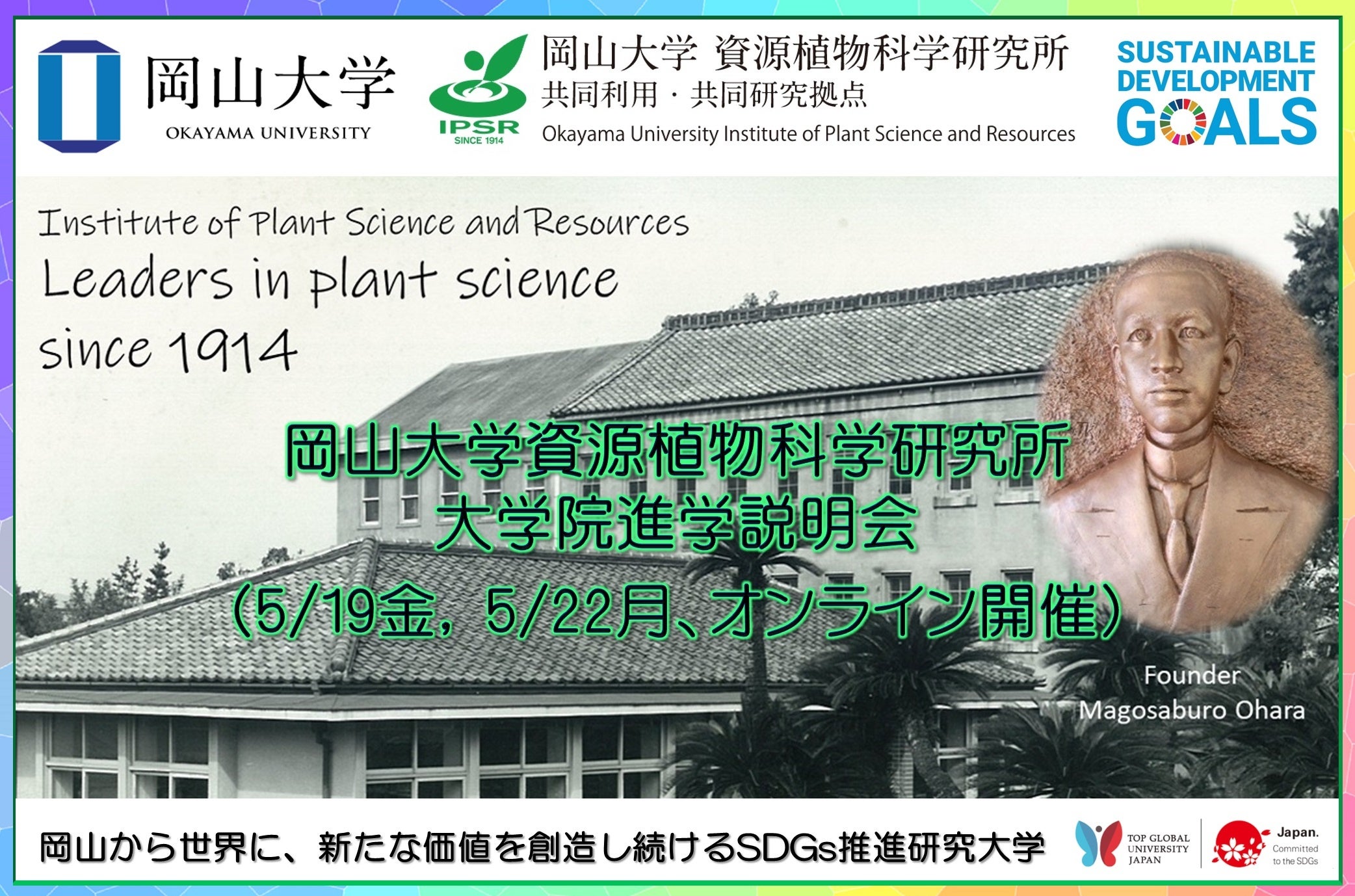【岡山大学】資源植物科学研究所 大学院進学説明会〔5/19金, 22月 オンライン開催〕