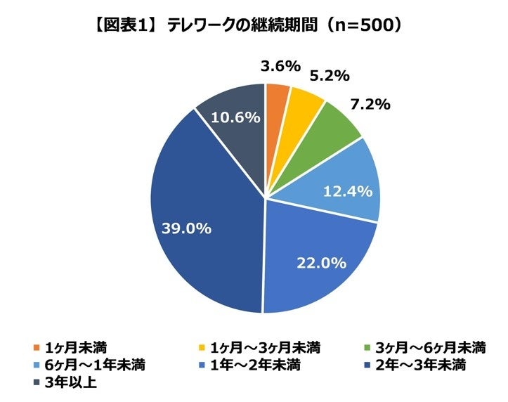週に1日以上テレワークを実施する派遣社員500名に対し、テレワークの継続期間を聞くと、「2年~3年未満」と回答した人が最も多く39.0%となりました(図表1)。また、テレワークを行った経緯は「会社からの指示でテレワークを実施した」との回答が83.8%となり、コロナ禍でテレワークを実施した人が多いことが推測できます(図表2)。