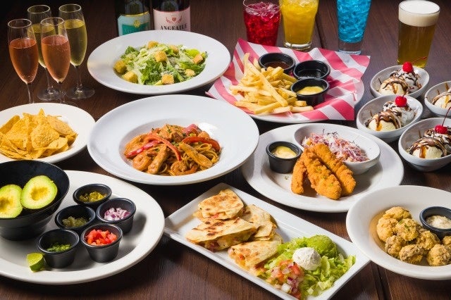 シーザーサラダ ・ガカモレ&チップス ・フライデーズ マッシュルーム ・チキン ケサディア・コールスロー ・チキンフィンガー ・ケイジャンシュリンプ&チキン パスタ ・フライデーズフライ & 3種ディップ(おかわり自由、フライデーズシグネチャーソース・BBQソース、ハニーマスタードの3種のディップ付き)・ミニサンデー(レディースパーティーコース限定)