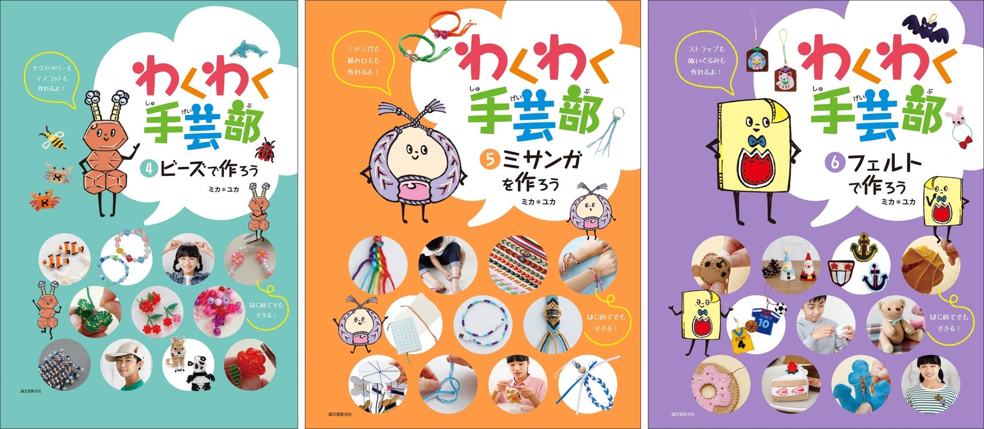 三巻セット(④ビーズで作ろう ⑤ミサンガを作ろう ⑥フェルトで作ろう)での発売となっており、授業の延長として、夏休みの課題として、地域のレクリエーションとして、そして手芸部などの活動にも役立ちます。