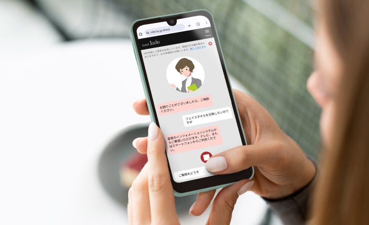 さらに、当社の宿泊施設向けインフォメーションサービス「Inforia」(※)とシームレスな連携が可能です。セットで導入いただくことで、ルームオーダーの受付やレストランの混雑状況のアナウンス、ゲストの質問への応対など、一連の接客業務のDX推進に寄与します。
