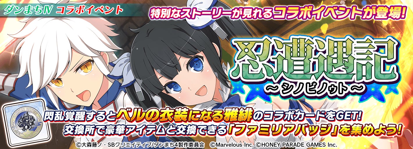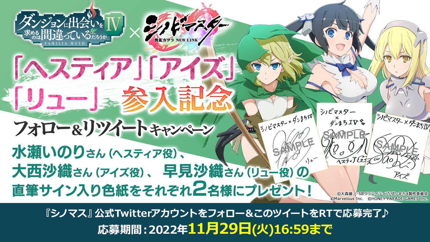 株式会社HONEY∞PARADE GAMES(代表取締役 三浦徹朗/所在地:東京都品川区)の『シノビマスター 閃乱カグラ NEW LINK』は、アニメ『ダンジョンに出会いを求めるのは間違っているだろうかⅣ』とのコラボレーションを本日より開始いたしました。