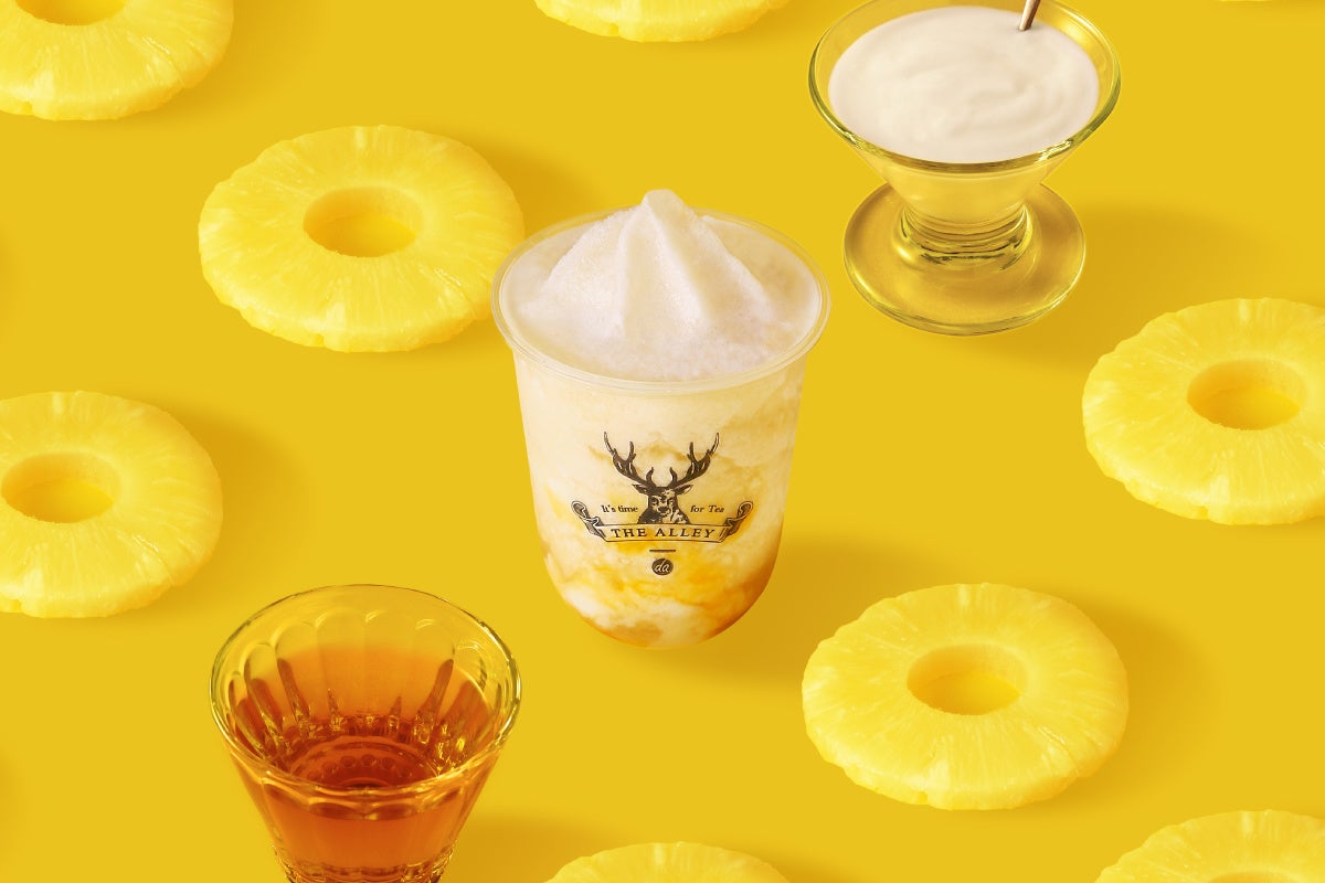 THE ALLEYの茶葉が持つ香りや味わいを隠し味に、これから旬を迎える白桃とパイナップルをスムージーに仕上げ、酸味が爽やかなヨーグルトと合わせました。混ぜながら味わいの変化をお楽しみください。