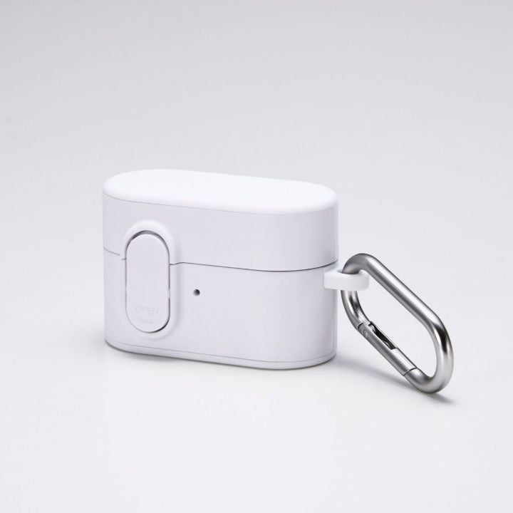 落下時の飛び出しを防ぐロック機能と、独自設計のエアークッションで守る、軽く、衝撃に強いLinkBuds Clip用TOUGH SLIM Lockケースです。