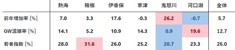 熱海・箱根・伊香保・草津・鬼怒川・河口湖エリアの訪問者数が前年比5.7%増加