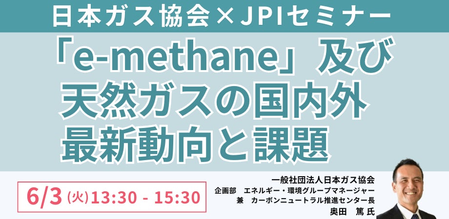 【JPIセミナー】「”e-methane” 及び天然ガスの国内外最新動向と課題」6月3日(火)開催