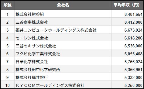 【2025年最新版】福井市:上場企業平均年収ランキングTOP10/SalesNow DBレポート