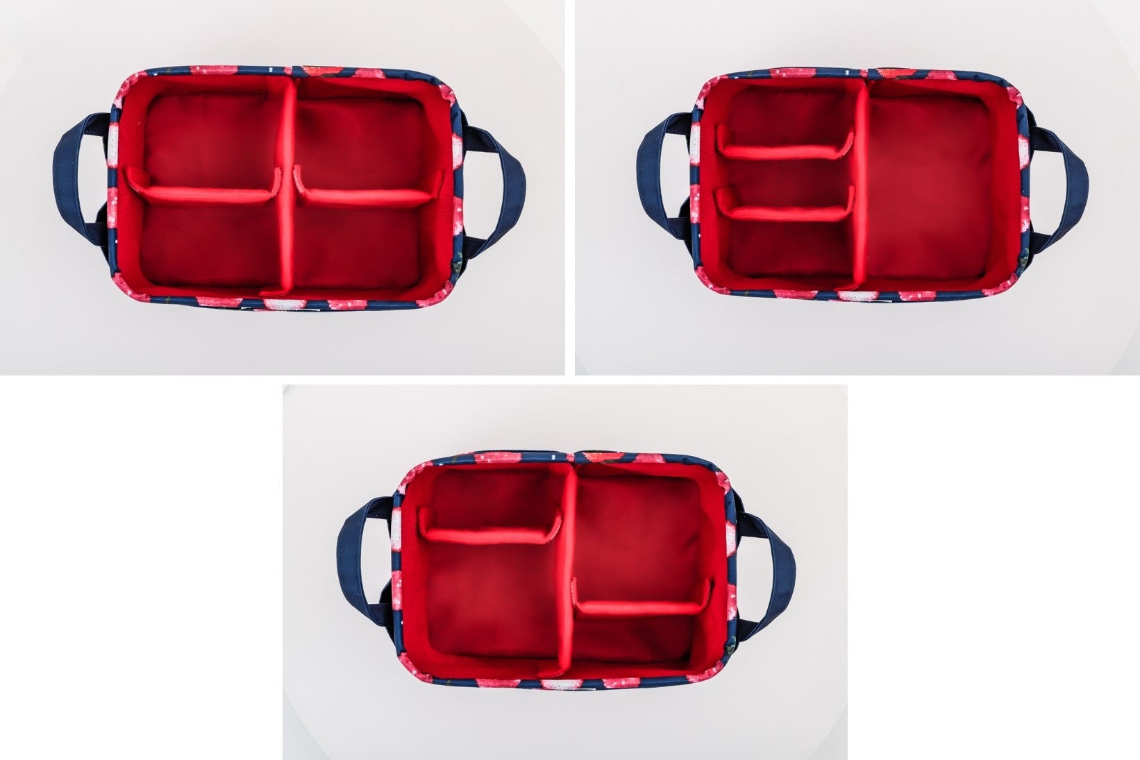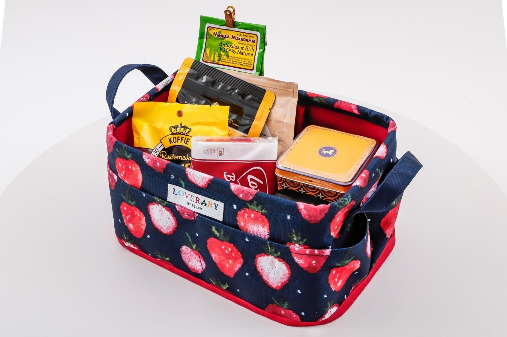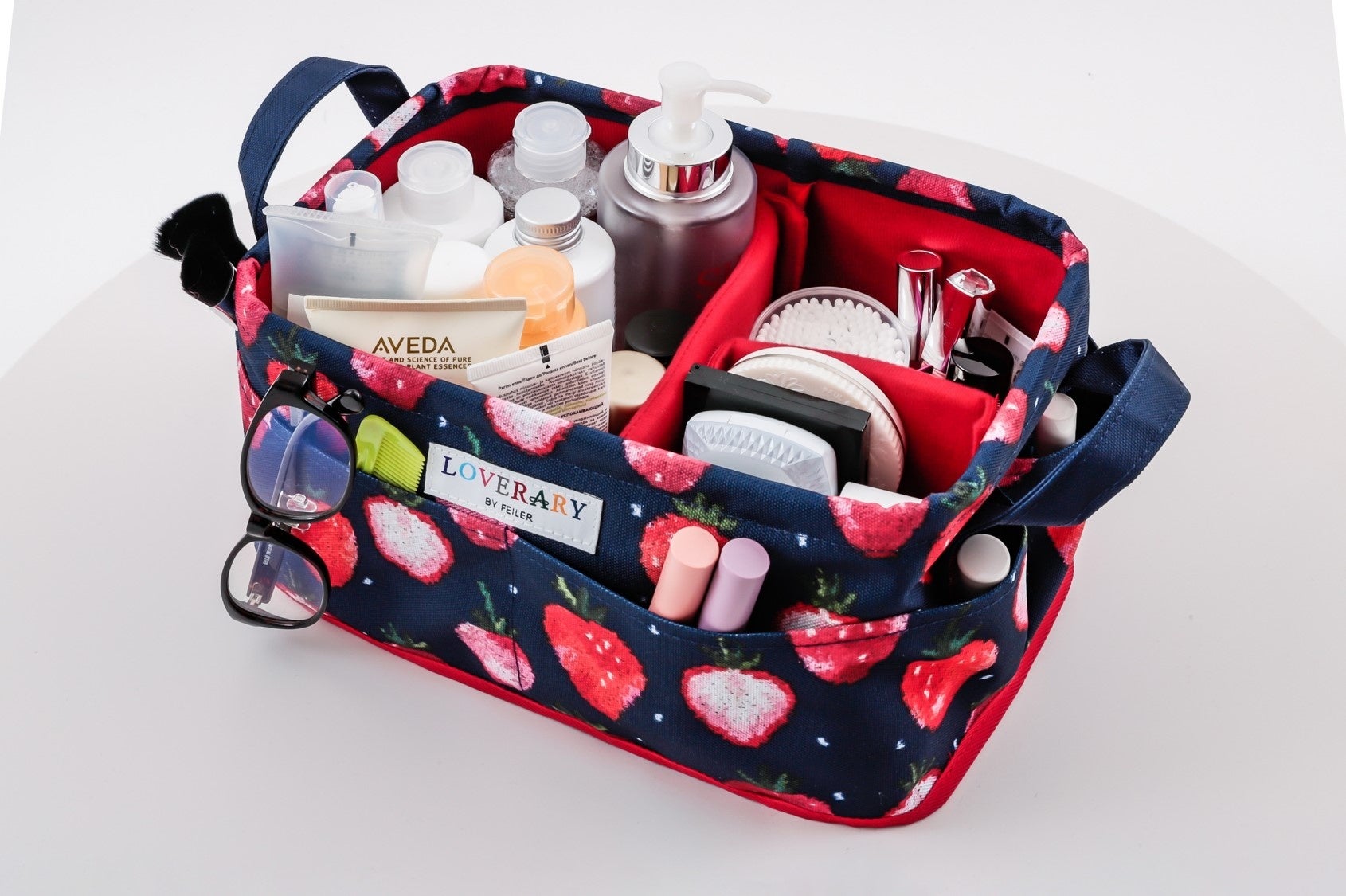 スペシャルアイテムはLOVERARY BY FEILERのなかでも特にファンの多い、甘酸っぱいストロベリーに、チャーミングなドットをトッピングしたデザイン「ストロベリードット」の新色、上品なネイビーベースの収納ボックス。4つの外ポケットと動かせる仕切りつきで収納力と整理力はバツグン。動かせる仕切りは面ファスナーで着脱できるので、中に入れるものに合わせてアレンジできるのも高ポイントです。