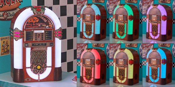 さまざまな色に変化しながらきらめく光が、本物のジュークボックスさながらに、お気に入りのメロディを一層鮮やかに演出します。