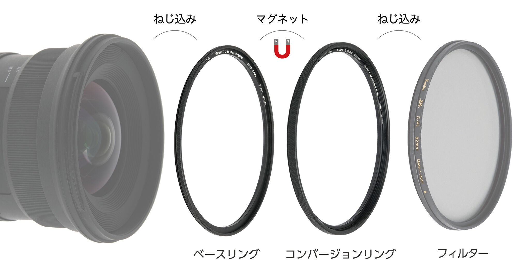 ※本製品を取り付けただけではフィルターをレンズに装着することはできせん。別途「マグネティック・マウント・システム コンバージョンリング」をお求めください。