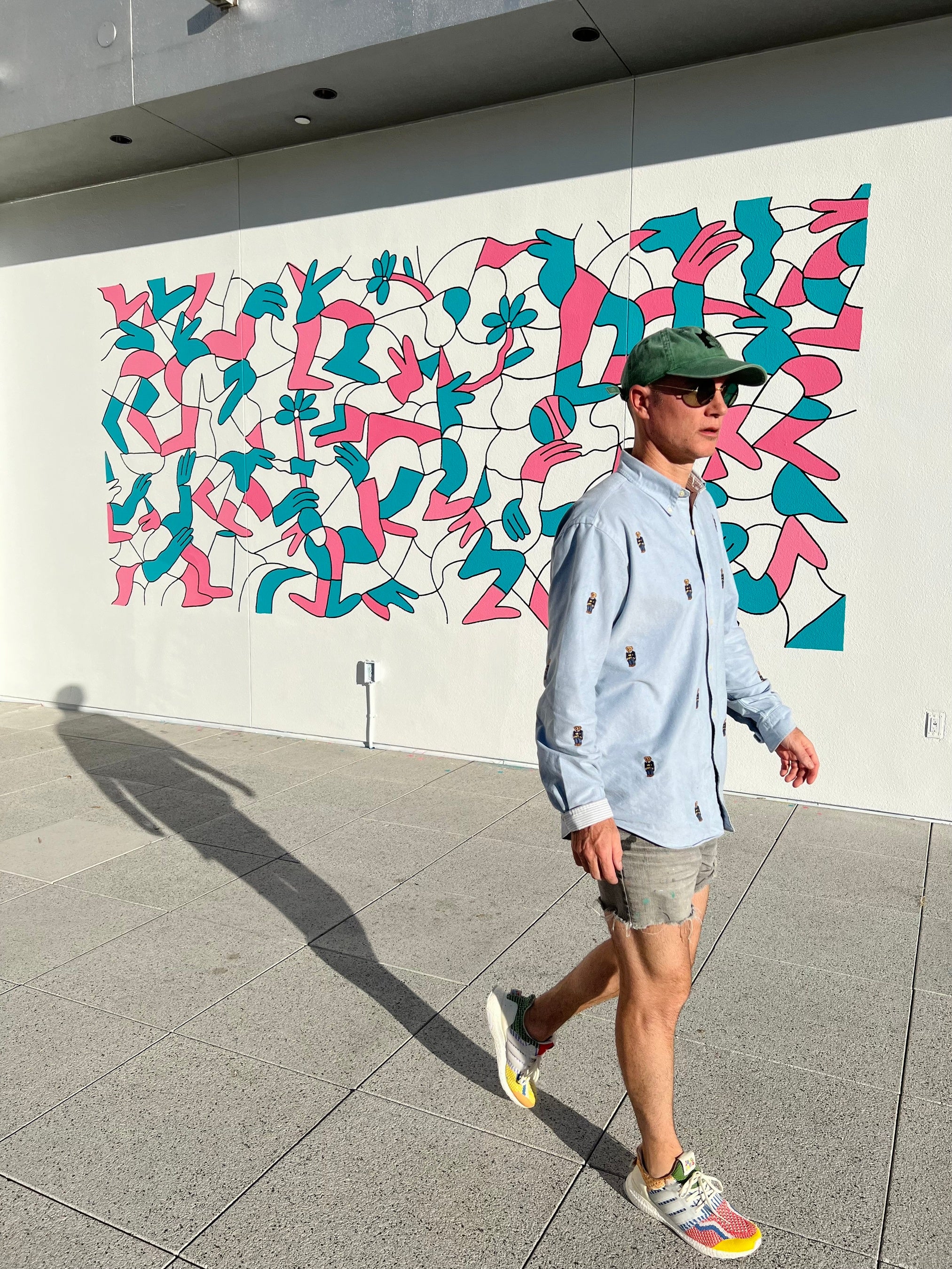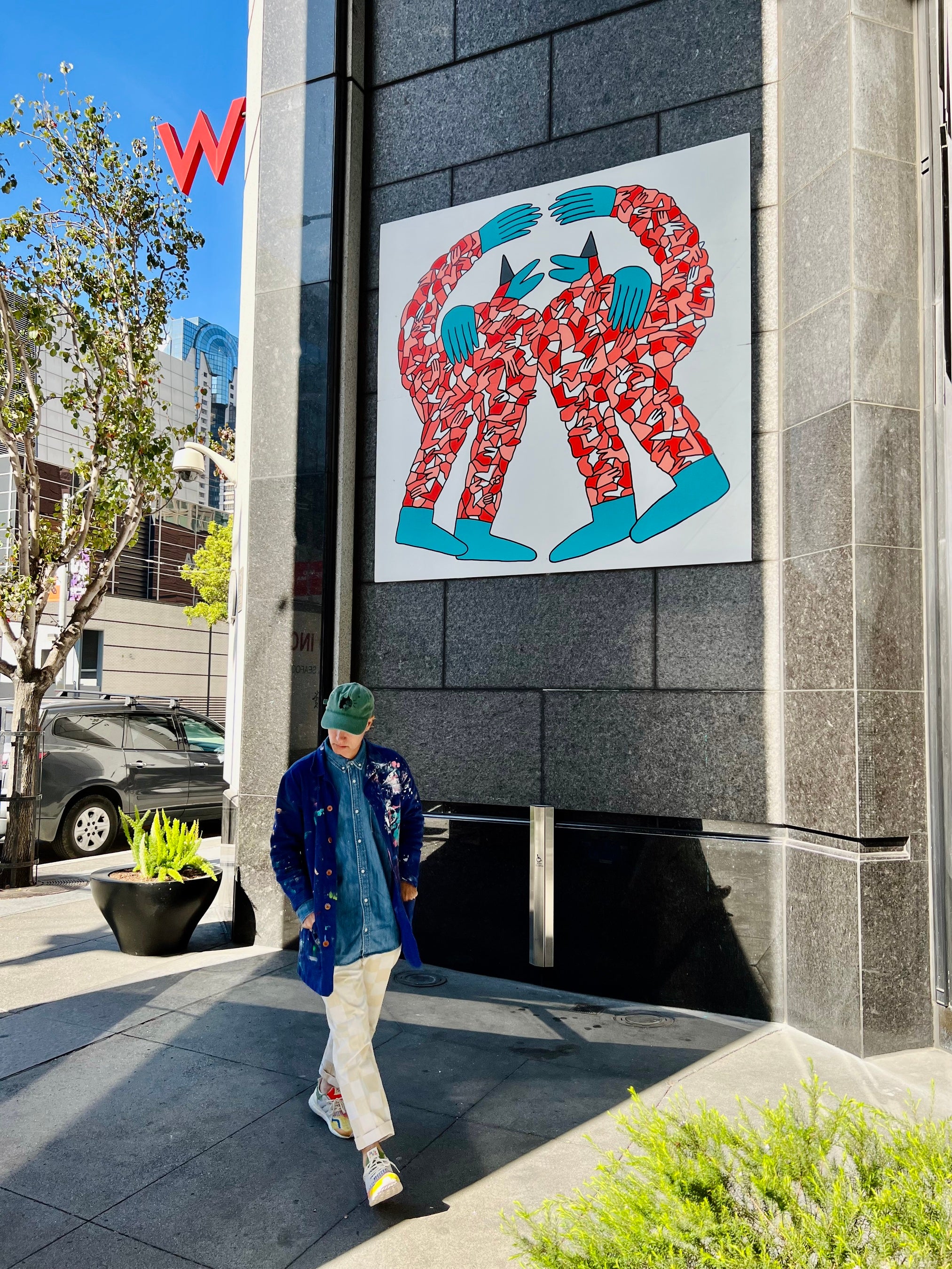 画家、イラストレーター、映画製作者、写真家などとして活躍している、フランスの人気アーティスト、ルーカス・ビューフォート。その活気に満ちたカラフルな作品は、彼の変わらぬ2つの情熱であるストリートアートとスケートボードカルチャーと密接に関わっています。これまで世界中のWホテルとコラボレーションしてきたルーカスが4月にW大阪に滞在した際に「心斎橋SDGsプロジェクト」の意図に賛同し、3社プロジェクトとのコラボレーションが実現しました。