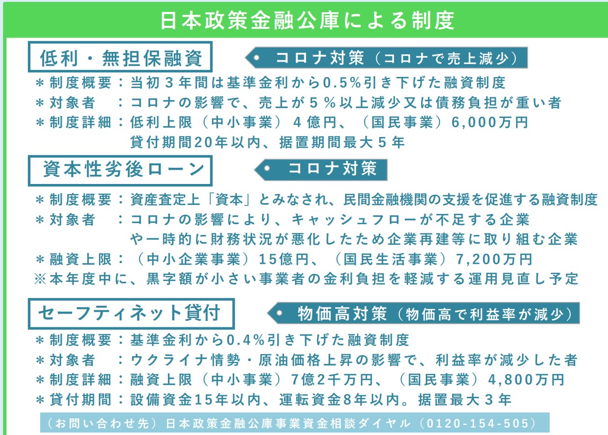 ・資本性劣後ローン:資産査定上「資本」とみなされ、民間金融機関の支援を促進する融資制度