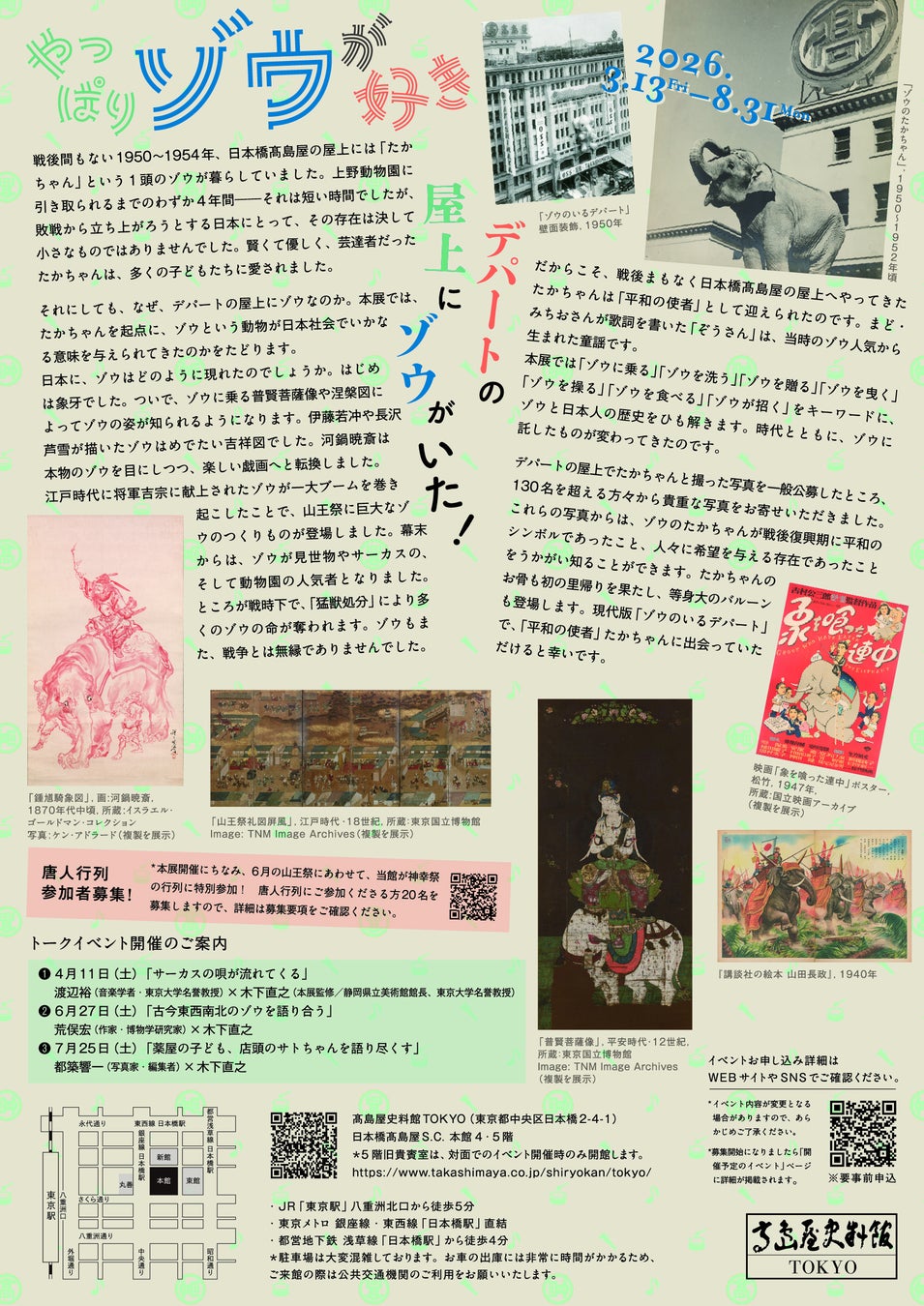 【高島屋史料館TOKYO】企画展「やっぱりゾウが好きーデパートの屋上にゾウがいた!」