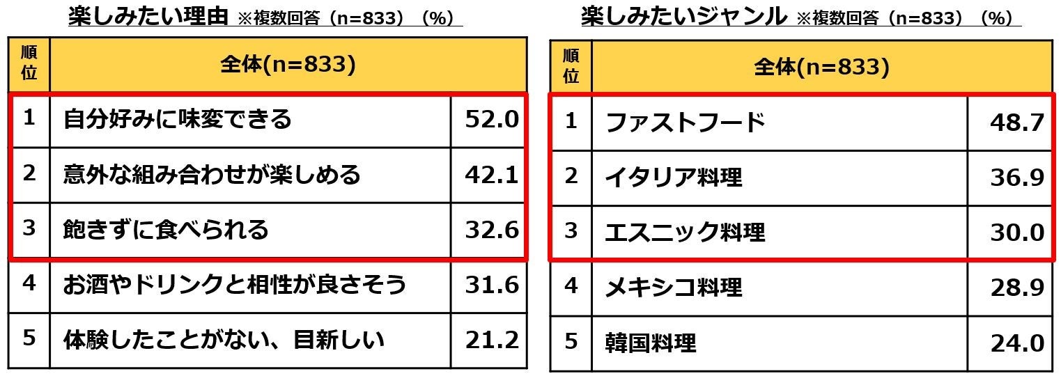 3.楽しみたい料理ジャンルは「ファストフード」「イタリアン」「エスニック」がTOP3。