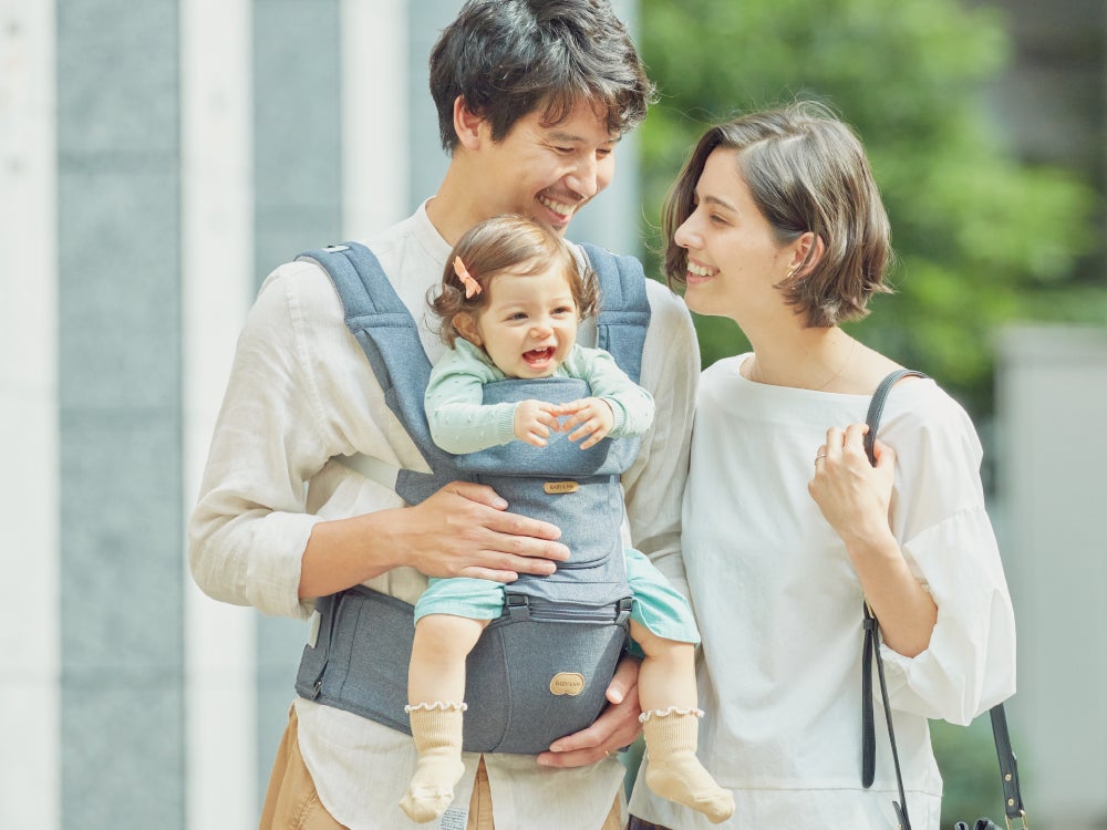 「BABY&Me」のヒップシートキャリアは、椅⼦のような台座(ヒップシート)にお⼦様をお座りさせる、従来の抱っこ紐とは全く形の異なる抱っこ紐です。⼈間⼯学に基づき設計された形と、ヒップシートの要である台座に独⾃の2層構造(デュアルフォーム)を採⽤することにより、お⼦様の体重をバランスよく分散させ、多くのママパパを悩ませていた「抱っこによる肩や腰の負担」を⼤幅に軽減します。また負担軽減を実証(⼤阪公⽴⼤学との「抱っこ紐使⽤時の⾝体的負担の研究」)することで、『ゼクシィBaby』クチコミNo.1や、グッドデザイン賞、キッズデザイン賞など、多くのアワードを受賞しています。