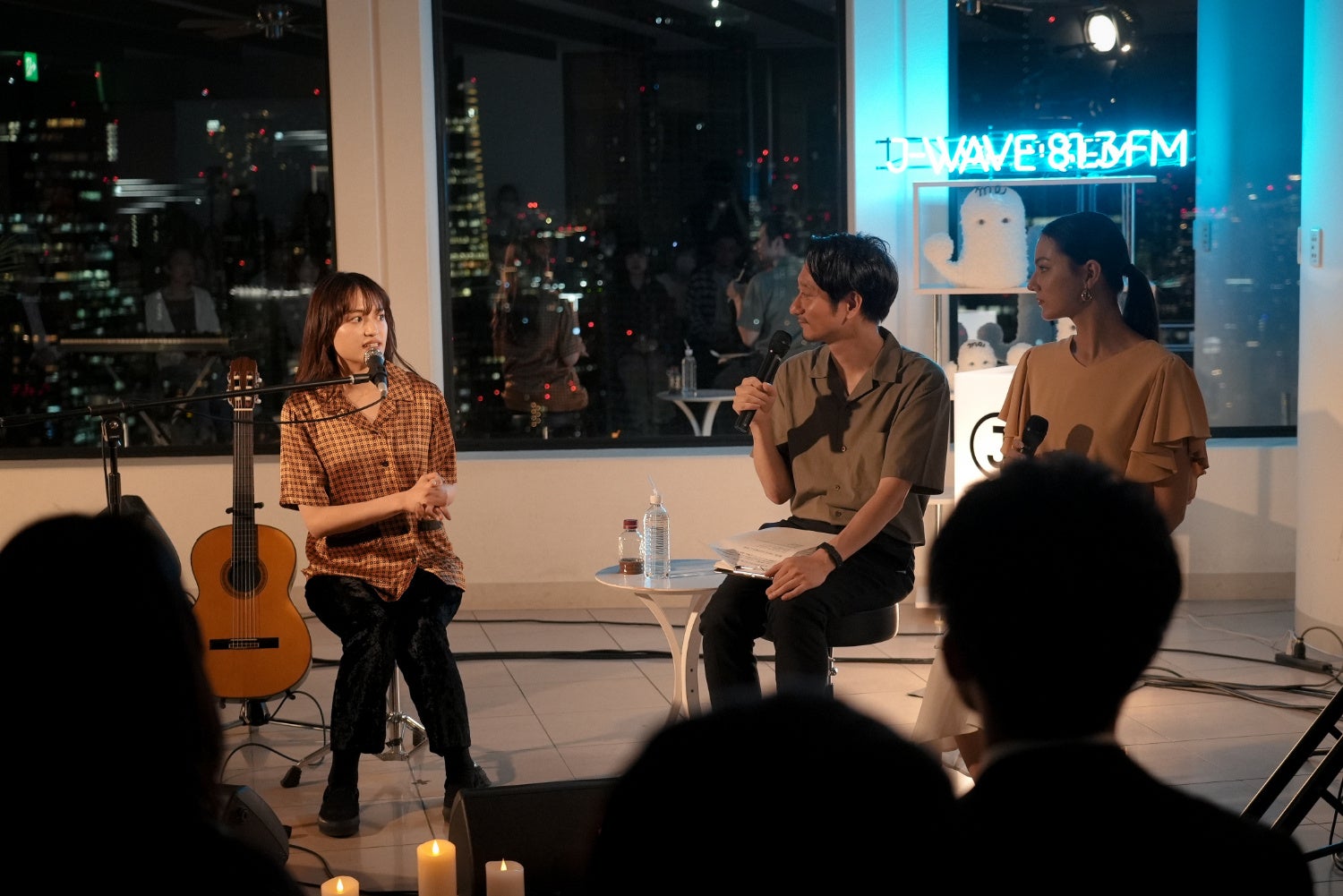 “音楽”と“夜景”を楽しめる、不定期にオープンするバー「J-WAVE BAR」。六本木ヒルズの33階にあるJ-WAVE局内の特設BARで、幻想的な夜景をバックにプレミアムなライブが、しかも至近距離で繰り広げられるという贅沢なイベントだ。4年半ぶりの開催となったこの日は雨予報だったがすっかり晴れ、窓の外には美しい夜景が広がった。