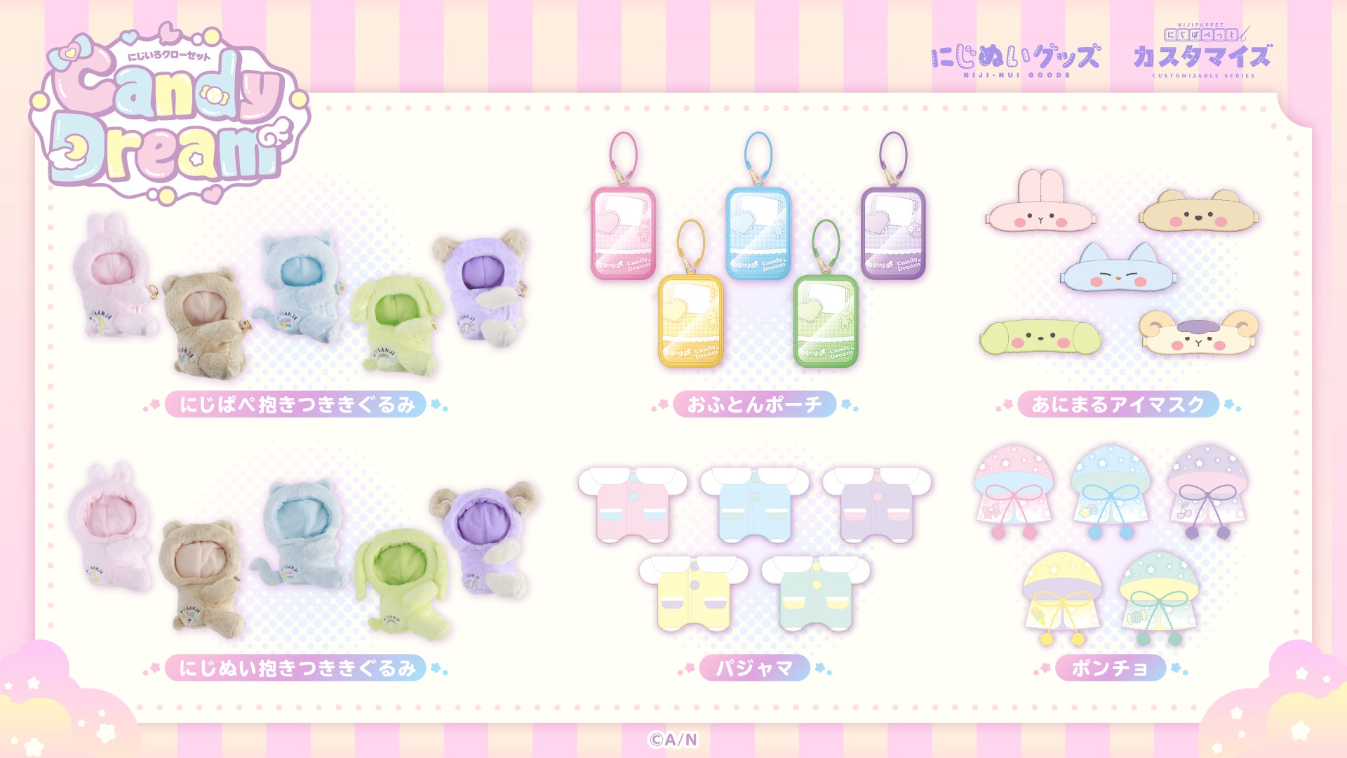 ・Xハッシュタグ:#Candy_Dream #にじいろクローゼット #にじぱぺっとカスタマイズシリーズ #にじぬいグッズ