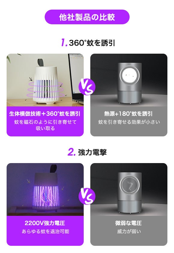 UV光源誘引/電撃ショックで撃退/常夜灯にも/薬剤不要/安全安心