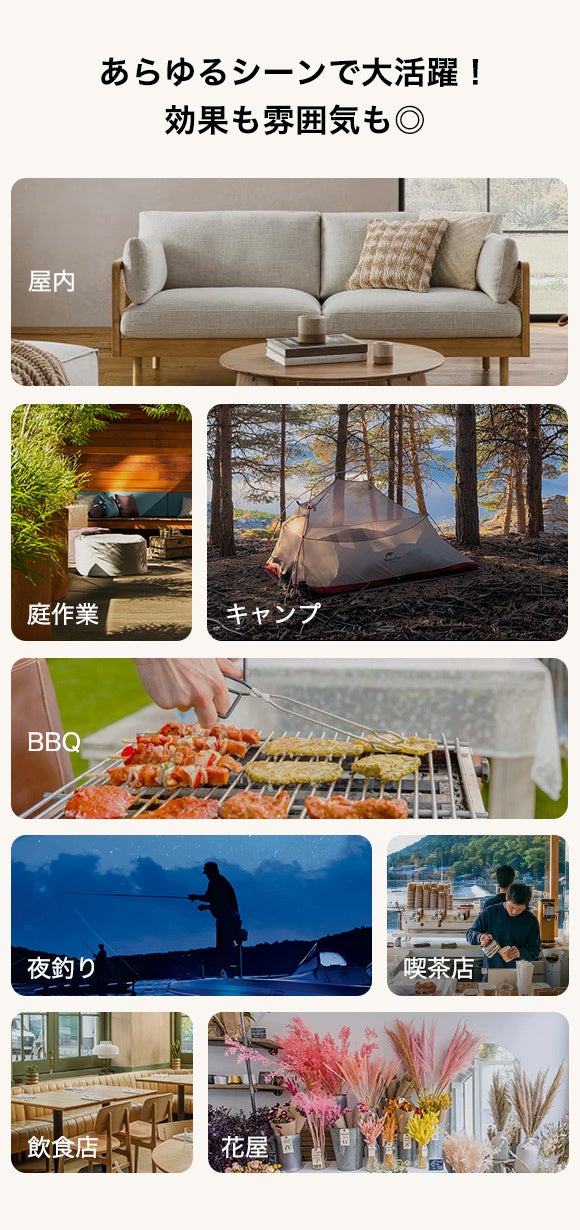 ⚡ 大容量バッテリー内蔵で屋内にはもちろん、アウトドアや夜釣りなどにも大活躍!