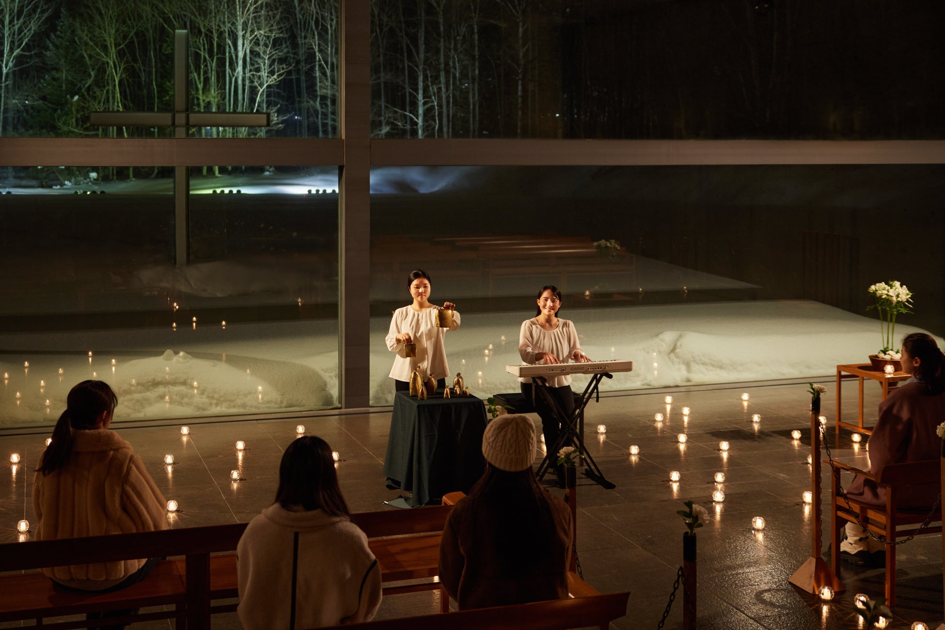 牛が身に着けるベルをハンドベルとして使用し、クリスマスソングを演奏するコンサートを開催します。演奏中にはサンタクロースが登場。サンタクロースに出会うとトマム牛乳(*)を使用したミルクキャンディ―をもらうことができます。温かい灯りと心地よい音楽に包まれながら、特別なひとときを過ごせます。