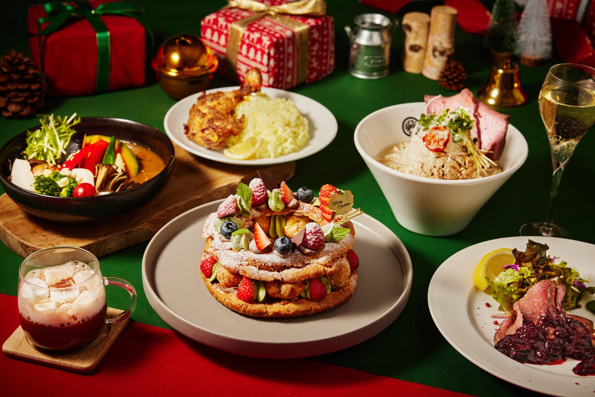 9つの店舗で食事や買い物が楽しめる「ホタルストリート」では、クリスマスマーケットを開催します。6つの飲食店ではローストビーフやマシュマロショコラなど、クリスマス限定メニューを提供。ファーム星野の乳製品を使用し、リースをイメージしたクリスマスケーキも販売します。また雑貨屋では、クリスマス気分を高めるマグカップやステッカーなどのオリジナルグッズを販売。ホタルストリート全体でクリスマスを楽しめます。