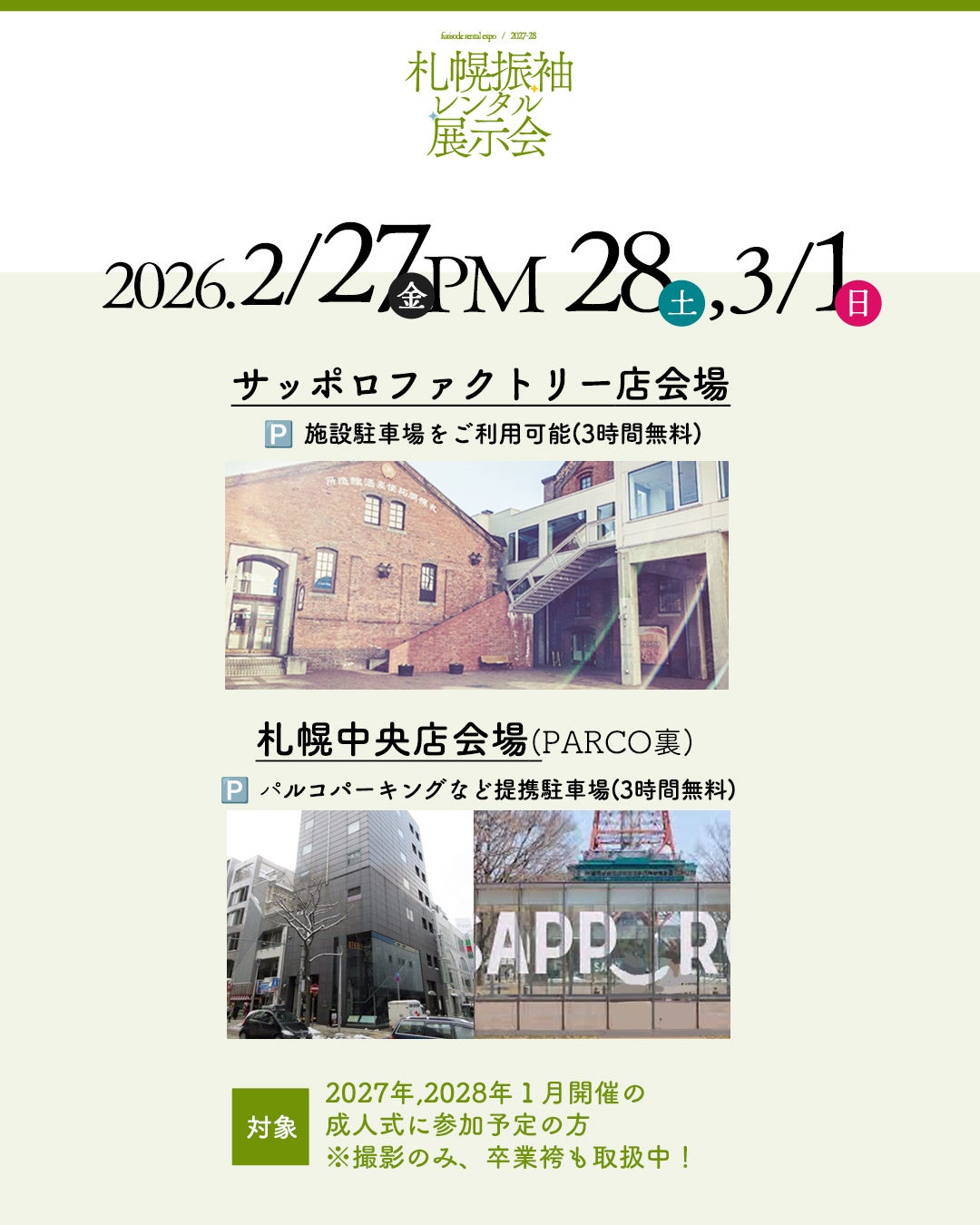 2026年2月27日(金)PM、28日(土)、3月1日(日)
