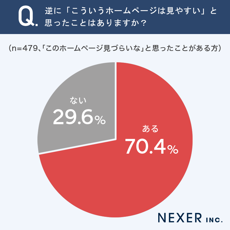 70.4%の方が「こういうホームページは見やすいと思ったことがある」と回答しています。