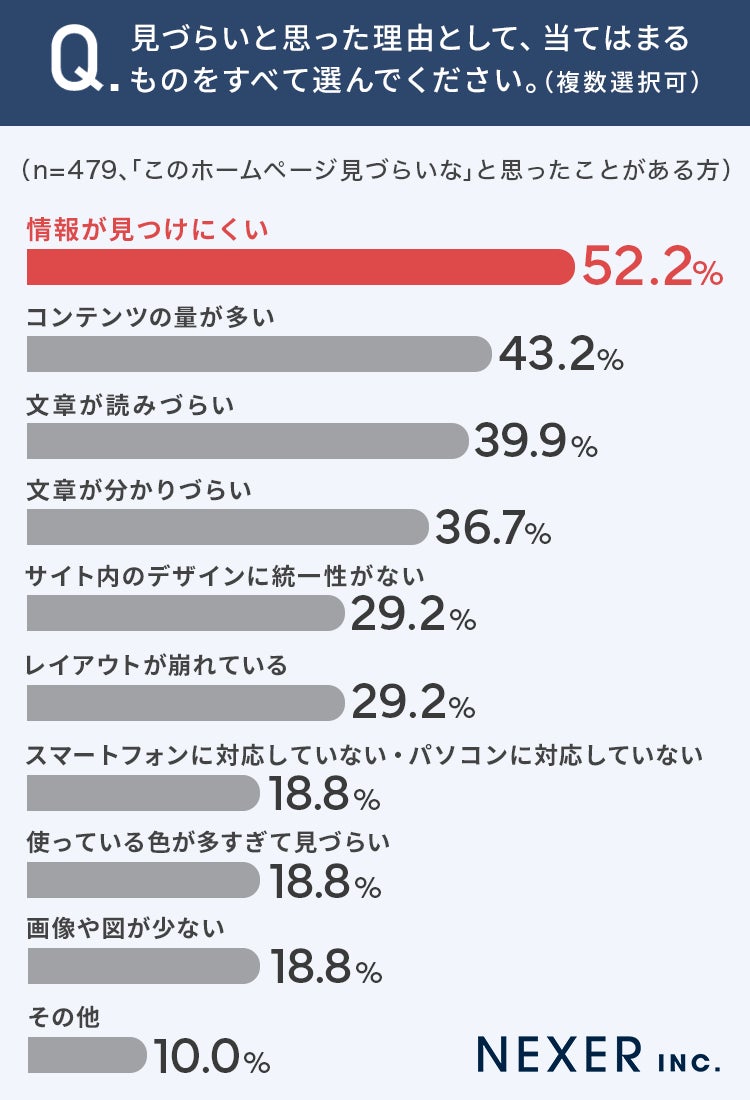 ■52.2%が「情報が見つけにくいホームページは見づらい」と回答