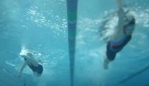 「スマートスイミングレッスンシステム」では、プール施設に複数のカメラを設置して映像を撮影します。 レッスン中、生徒は泳いだ直後にプールサイドのタブレットで自分の泳ぎを動画でチェックすることができ、ビジュアルによる気づきや学びにつながります。