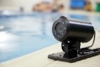プール内であることに配慮し、防水対応を施してソニー製小型リモートカメラを設置しています。