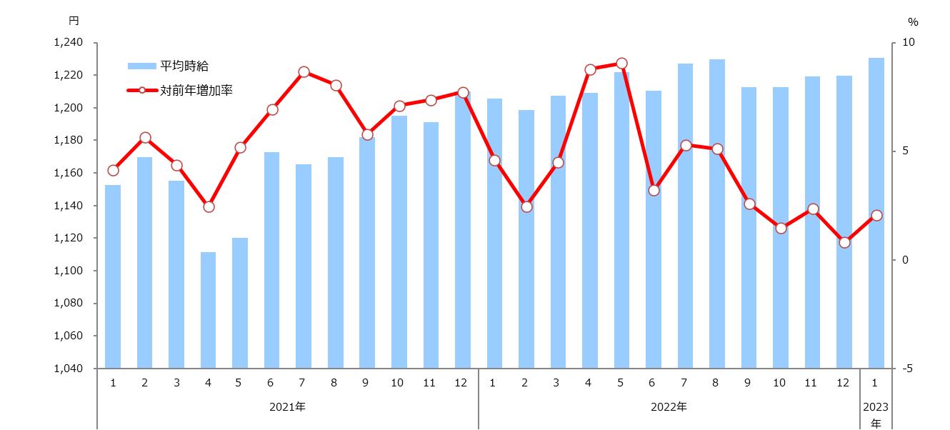2023年1月度 アルバイト平均時給調査 全国の平均時給は1,231円と過去最高を更新