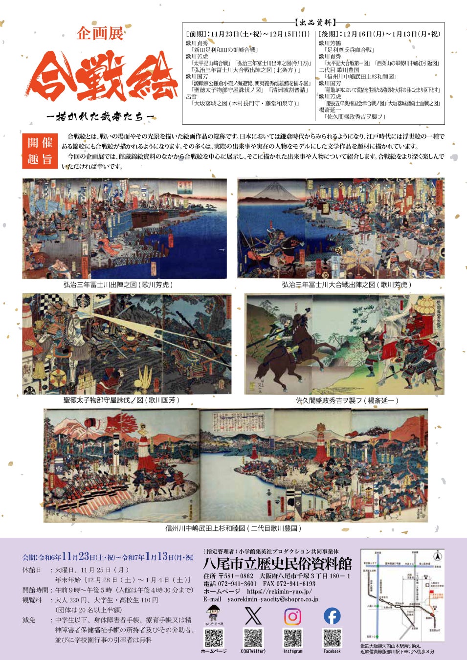 11月23日(土・祝)より八尾市立歴史民俗資料館にて企画展「合戦絵-描かれた武者たち-」開催!