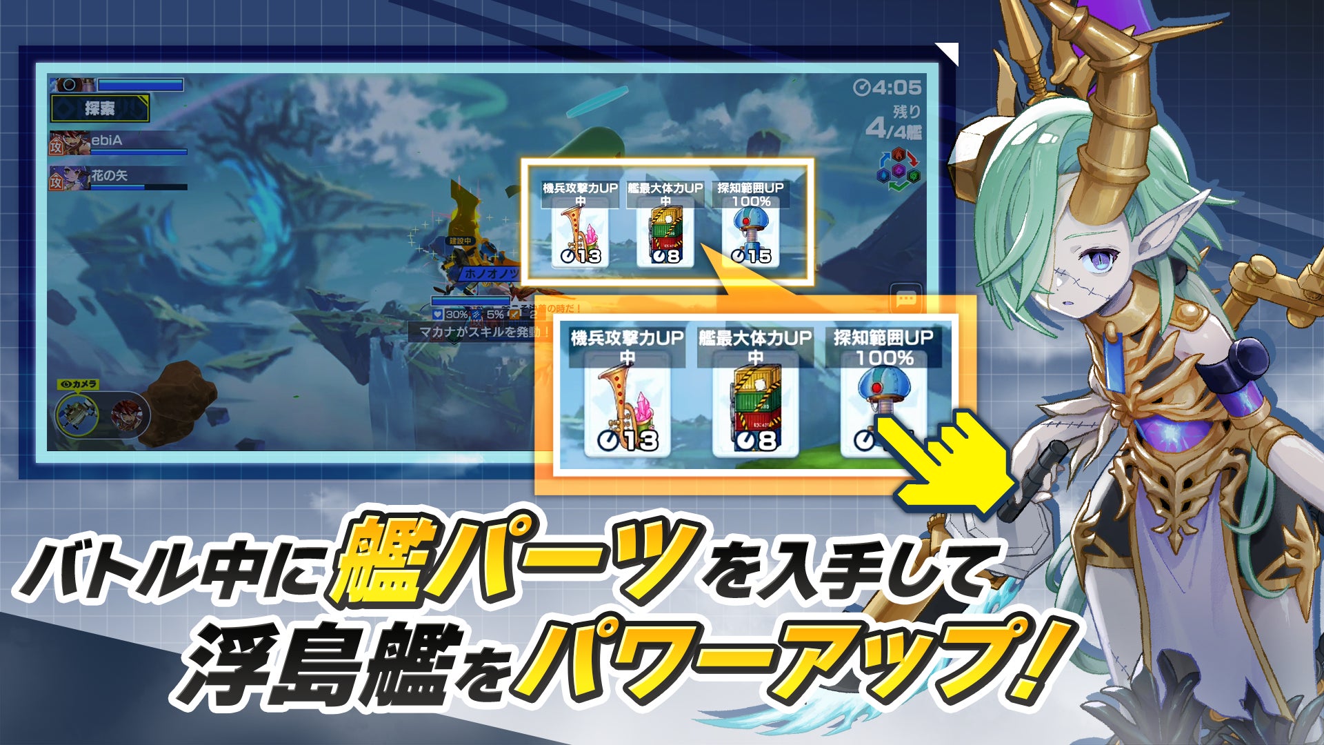 バトル中に自チームの艦を強化する「艦パーツ」を入手することができます。ドリルや大砲のような武器から防御力を上げる装甲、探索範囲を広げる装置など、種類は様々。