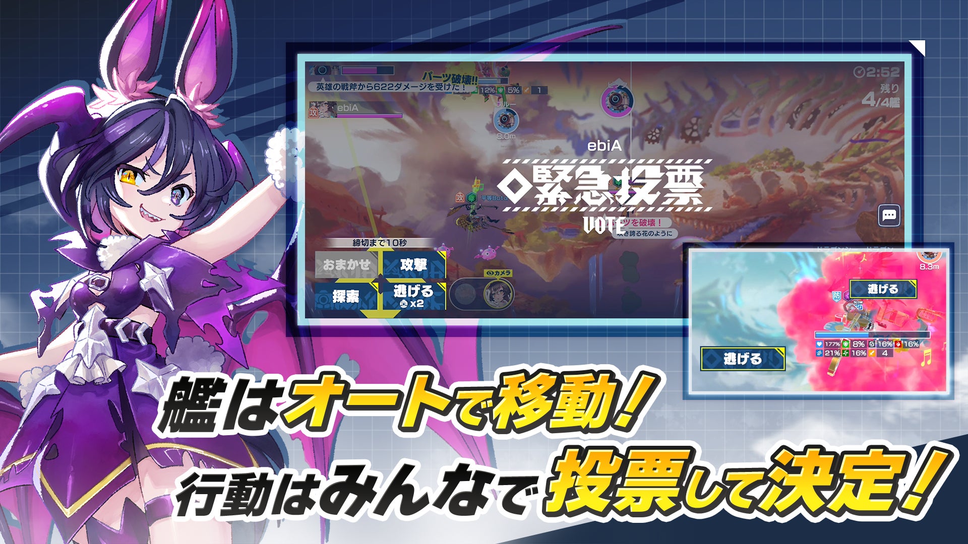 艦に乗り合わせた仲間たちと協力して敵艦を撃沈し、最後まで生き残りを目指します。