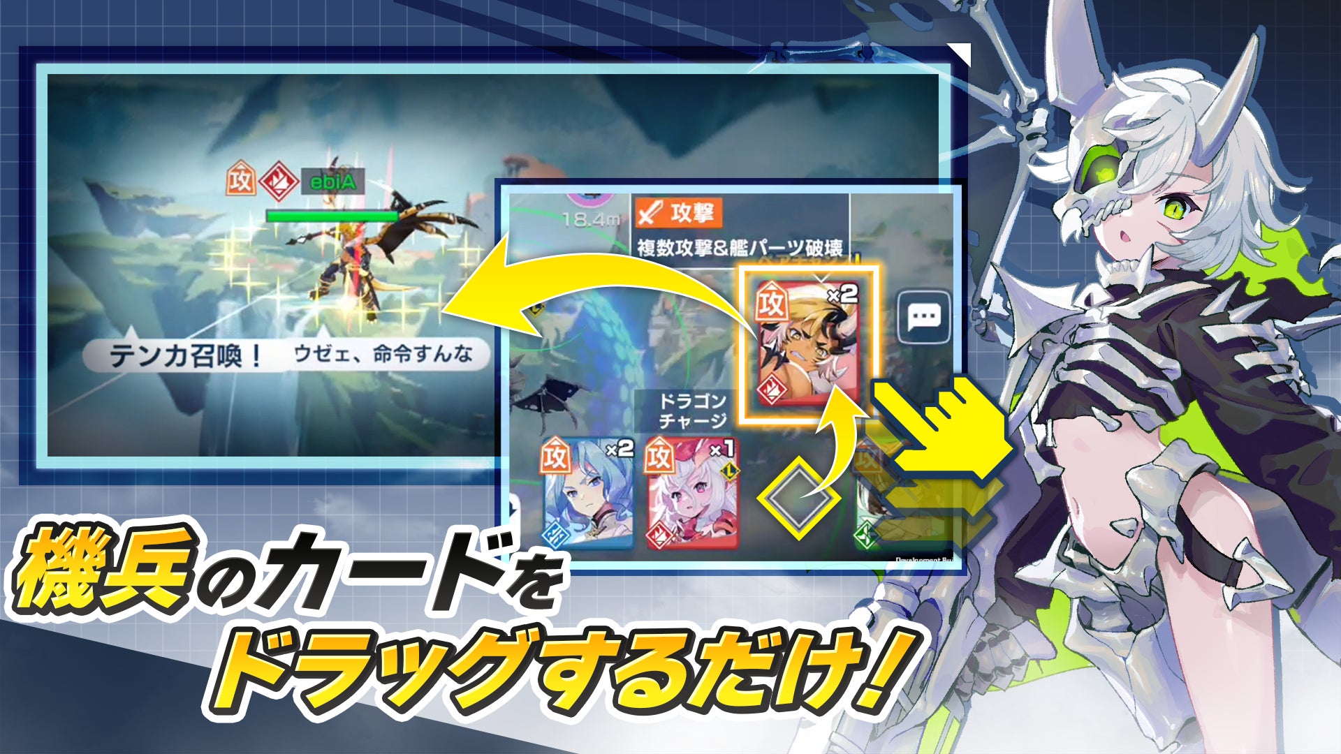 バトルは機兵を選択してドラッグで召喚。オートで行動する機兵に戦闘はおまかせ。