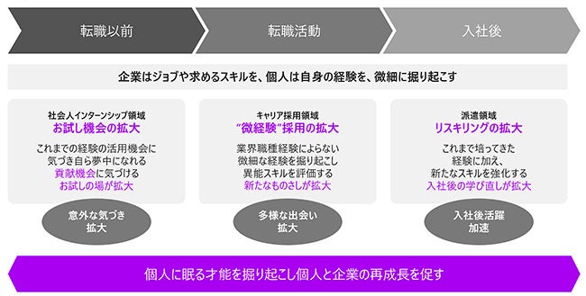 社会人インターンシップ領域における「お試し機会」の拡大によって、自身の経験の活用機会や、自らが夢中になれる貢献機会への意外な気づきが拡大しています。
