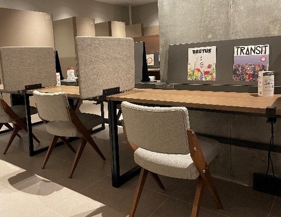 お仕事や勉強に集中したいときは半個室のブースを、カフェ・バーとしてお買い物の途中やお仕事終わりにゆっくりとくつろぐときはソファ席をご利用いただくなど、お客様が自由に使い方を選ぶことができる居心地の良い空間です。